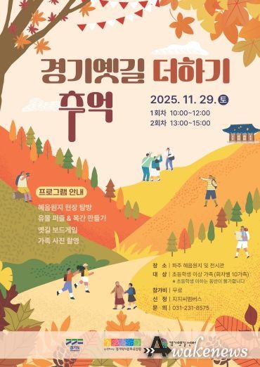 어웨이크뉴스 오경하 기자 | 경기문화재단 경기역사문화유산원는 오는 11월 29일 토요일, 의주길에 위치한 파주 혜음원지 일대에서 초등학생 이상 자녀를 둔 가족을 대상으로 하는 역사 체험 프로그램 ‘경기옛길 더하기 추억’을 개최한다고 밝혔다.