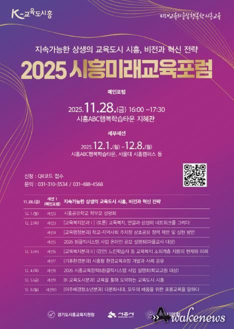어웨이크뉴스 오경하 기자 | 시흥시는 시흥교육지원청, 시흥시의회와 함께 오는 11월 28일부터 12월 8일까지 ‘2025 시흥미래교육포럼’을 진행한다.