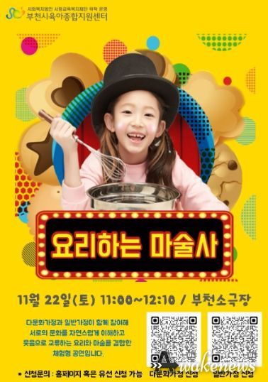 ‘요리하는 마술사’(11월 22일, 부천소극장)는 요리와 마술을 결합한 체험형 공연으로, 다문화가정과 일반가정이 함께 참여해 서로의 문화를 자연스럽게 이해하고 웃음으로 교류하는 무대다.