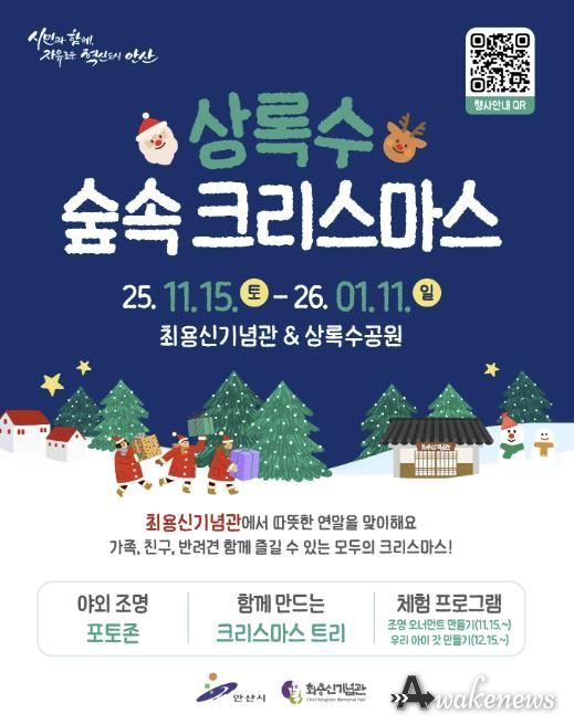 어웨이크뉴스 오경하 기자 | 안산시 최용신기념관은 오는 15일부터 내년 1월 11일까지 최용신기념관 및 상록수공원 일원에서 시민과 함께하는 체험행사 ‘상록수 숲속 크리스마스’ 행사를 운영한다고 12일 밝혔다.