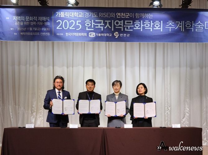 어웨이크뉴스 오경하 기자 | 경기문화재단 전곡선사박물관은 지난 7일 백학자유로리조트 컨벤션센터에서 연천군, 가톨릭대학교, 한국지역문화학회와 경기도 RISE 사업과 연계한 ’경기북부 지역혁신 네트워크 구축‘ 업무협약(MOU)을 체결했다.