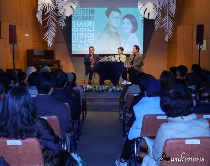 어웨이크뉴스 오경하 기자 | 배우 강성진과 방송인 이현영 부부가 지난 13일 양평군 황순원문학촌 소나기마을 첫사랑콘서트Ⅱ 문학교실에서 ‘가족이라는 선물’을 주제로 특별 강연을 진행했다. 이번 첫사랑콘서트Ⅱ는 매주 목요일 열리는 한국 문화 예술계 저명인사 초청 강연 프로그램 ‘2025 소나기마을 문학교실’과 공동으로 마련됐다.