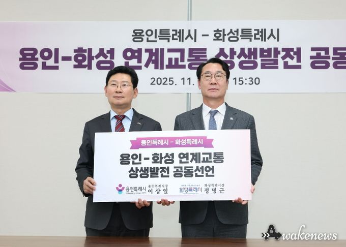 화성특례시와 용인특례시는 21일 고양시청 백석별관 투자회의실에서 ‘화성-용인 연계교통 상생발전 공동선언문’을 발표하고, 반도체 메가시티의 핵심 축으로서 양 도시가 긴밀히 협력할 것을 천명했다.
