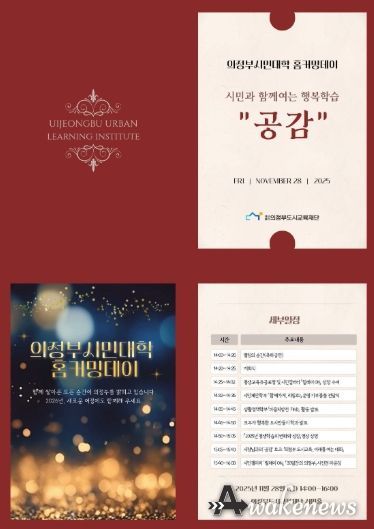어웨이크뉴스 오경하 기자 | (재)의정부도시교육재단은 오는 11월 28일 의정부도시교육재단 시민홀에서 ‘2025 의정부시민대학 홈커밍데이 공감’ 행사를 개최한다고 밝혔다. 이번 행사는 한 해 동안 시민이 참여한 다양한 학습 활동과 실천 사례를 공유하고, 시민대학의 성과를 시민과 함께 돌아보기 위해 마련됐다.