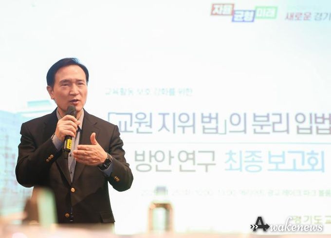 어웨이크뉴스 오경하 기자 | 경기도교육청이 25일 매리어트 광교에서 ‘교원의 지위 향상 및 교육활동 보호를 위한 특별법’분리 입법화를 위한 최종 연구보고회를 열고 ‘(가칭)교육활동 보호에 관한 법률’제정 시안을 공개했다.