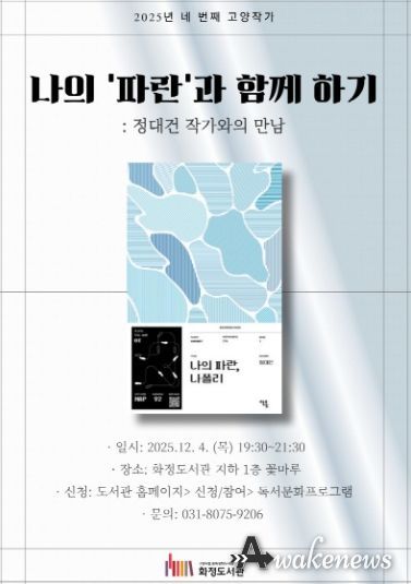 어웨이크뉴스 오경하 기자 | 고양특례시는 오는 12월 4일 오후 7시 30분부터 9시 30분까지, 화정도서관 지하 1층 꽃마루에서 고양작가 연계 프로그램 『나의 ‘파란’과 함께 하기: 정대건 작가와의 만남』을 운영한다고 밝혔다.