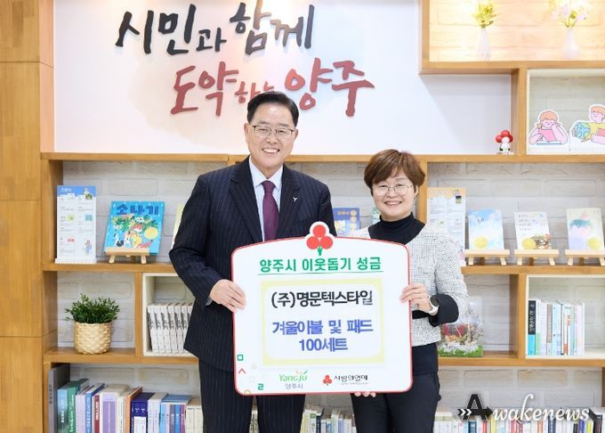 어웨이크뉴스 오경하 기자 | 양주시는 지난 1일 ㈜명문텍스타일로부터 겨울 이불과 매트 100세트(800만 원 상당)를 기탁받았다.