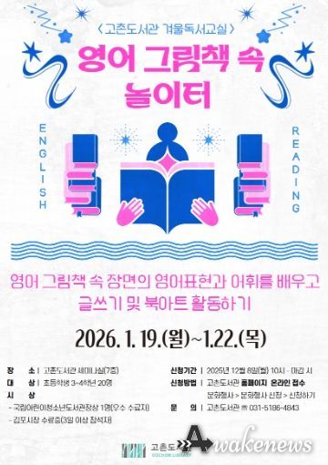 어웨이크뉴스 오경하 기자 | 김포시 고촌도서관은 오는 2026년 1월 19일부터 1월 22일까지 초등학생 3~4학년을 대상으로 겨울독서교실 '영어 그림책 속 놀이터'를 운영한다.
