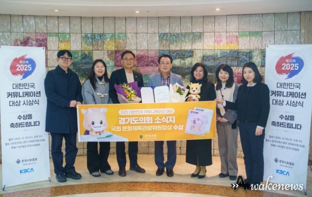 어웨이크뉴스 오경하 기자 | 경기도의회가 발행하는 의정 소식지 「경기도의회」가 12월 3일 한국프레스센터 국제회의장에서 열린 ‘2025 대한민국 커뮤니케이션 대상’에서 인쇄사보 공공 부문 국회 문화체육관광위원장상을 수상했다.