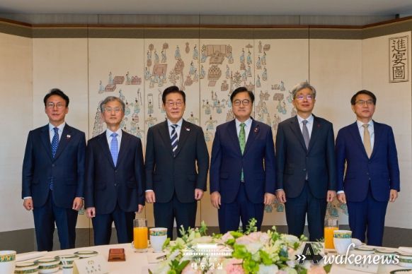 어웨이크뉴스 오경하 기자 | 3일 이재명 대통령과 5부 요인의 오찬은 1시간 40분 동안 화기애애한 분위기 속에 진행됐다.
