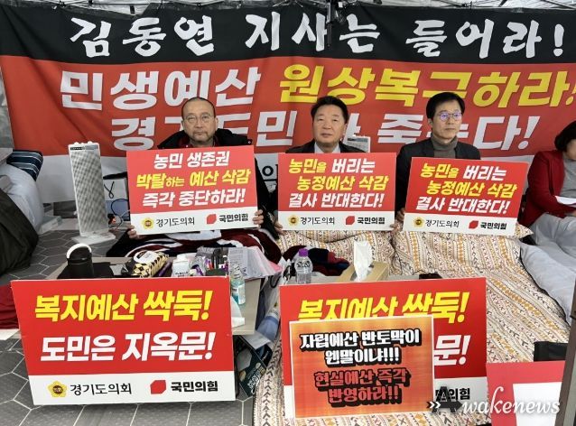 어웨이크뉴스 오경하 기자 | 경기도의회 농정해양위원회 방성환 위원장(국민의힘, 성남5)은 3일 국민의힘 대표단이 경기도의 민생예산 대폭 삭감과 정무라인의 행정사무감사 거부 사태에 맞서 투쟁을 이어가는 현장을 찾아 “김동연 도정의 책임 방기와 정치 편향 예산은 즉각 중단돼야 한다”라고 강하게 비판했다.