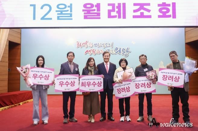 어웨이크뉴스 오경하 기자 | 의왕시가 12월 3일 시청 대회의실에서 열린 월례조회에서 '2025년도 공동주택 음식물쓰레기 줄이기 경진대회' 시상식을 개최하고 우수한 성과를 거둔 공동주택에 대해 표창을 수여했다.