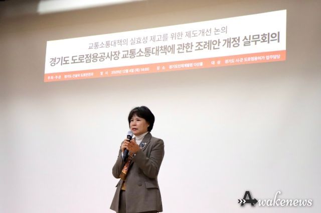 어웨이크뉴스 오경하 기자 | 경기도의회 건설교통위원회 서성란 의원(국민의힘·의왕2)은 4일 경기도인재개발원 다산홀에서 열린 ‘경기도 도로점용공사장 교통소통대책에 관한 조례안 개정 실무회의’에 참석해 조례 개정의 방향과 제도 개선 필요성을 강조했다.