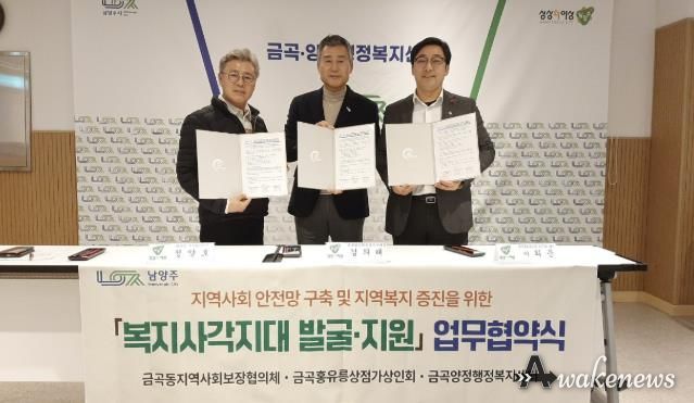어웨이크뉴스 오경하 기자 | 남양주시는 15일 금곡양정행정복지센터가 금곡동 지역사회보장협의체 및 금곡홍유릉상점가상인회와 함께 복지사각지대 발굴 및 취약계층 지원 강화를 위한 업무협약(MOU)을 체결했다고 밝혔다.