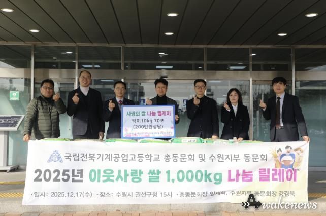 어웨이크뉴스 오경하 기자 | 권선구는 지난 17일, 국립전북기계공고 총동문회로부터 백미 10kg 70포(200만 원 상당)를 후원받았다고 밝혔다.