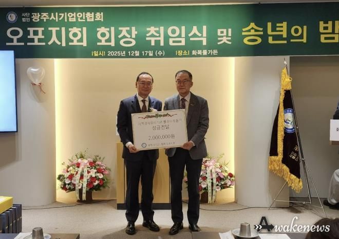 어웨이크뉴스 오경하 기자 | (사)광주시기업인협회 오포지회는 지난 17일 송년회를 개최하고 지역 내 어려운 이웃을 돕기 위해 농협 상품권 200만 원을 광주시 오포1동 행정복지센터에 기탁했다.