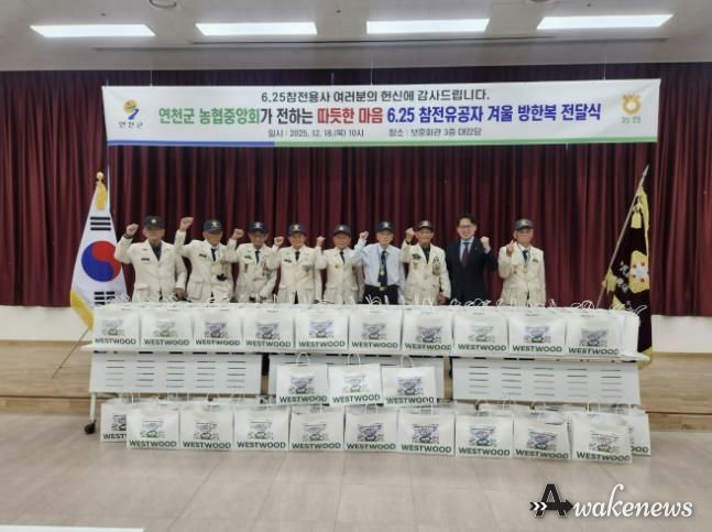 어웨이크뉴스 오경하 기자 | NH농협 연천군지부는 18일 연천군 보훈회관에서 연천 관내 6.25 참전유공자에 감사와 사랑의 마음을 담은 600만원 상당의 위문품(동절기 방한복)을 전달했다.
