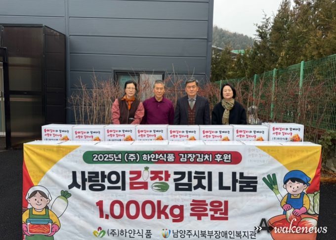 어웨이크뉴스 오경하 기자 | 남양주시는 17일 남양주시북부장애인복지관에서 ㈜하얀식품(대표 장유라)의 후원으로 ‘사랑의 김장김치 전달식’을 개최하고, 지역 내 취약계층 장애인 가정에 김장김치 1,000kg을 개최했다고 밝혔다.
