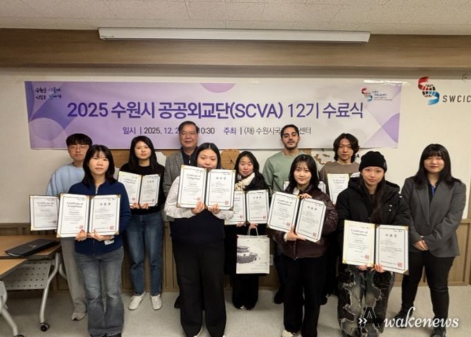 어웨이크뉴스 오경하 기자 | 수원시국제교류센터가 22일 센터에서 ‘수원시 공공외교단(SCVA) 12기’ 수료식을 열고, 단원 16명에게 수료증을 전달했다. 우수활동자 4명에게는 상장을 수여했다.