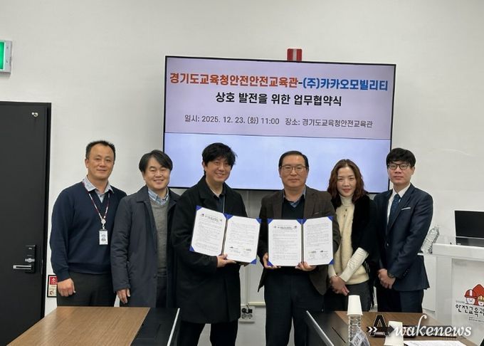 어웨이크뉴스 오경하 기자 | 경기도교육청안전교육관이 23일 ㈜카카오모빌리티(CEO 류긍선)와 교통안전 및 학생안전 교육 분야 발전을 위해 업무협약(MOU)을 체결했다.