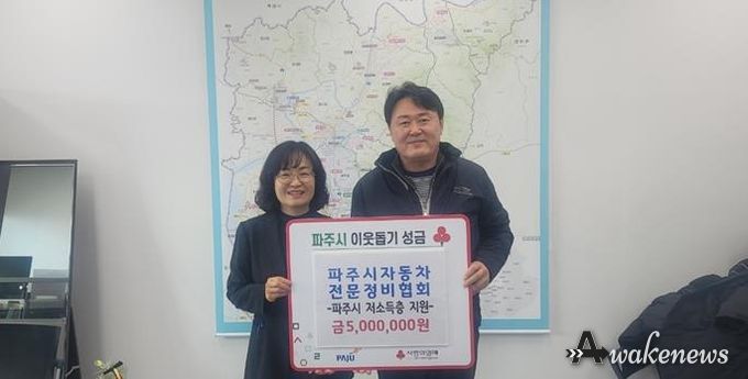 어웨이크뉴스 오경하 기자 | 파주시는 지난 22일, 파주시자동차전문정비협회가 파주시청을 방문하여 관내 취약계층을 위해 써달라며 현금 5백만 원을 기탁했다고 밝혔다.