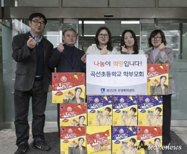 어웨이크뉴스 오경하 기자 | 권선2동 소재 곡선초등학교 학부모회는 권선2동행정복지센터에 “사랑의 라면”을 기탁했다.
