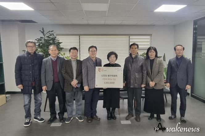 어웨이크뉴스 오경하 기자 | 지역사회 발전을 위해 모인 신천동 발전위원회에서 지난 12월 23일 신천동 취약계층 지원을 위한 후원금 300만 원을 전달했다.