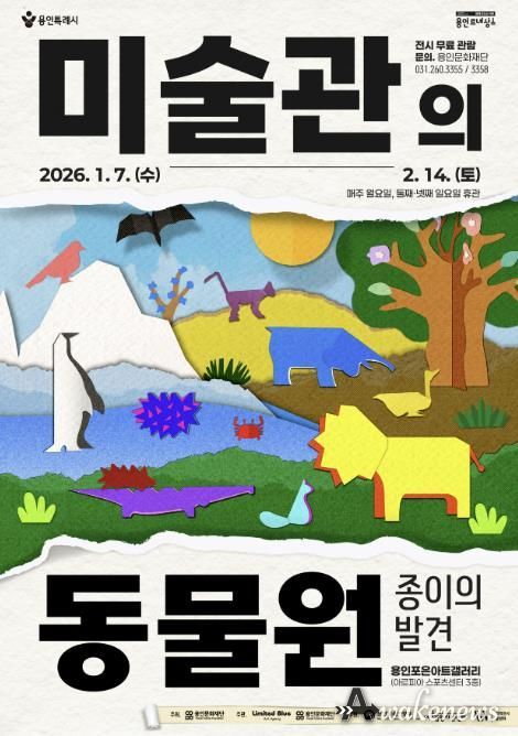 어웨이크뉴스 오경하 기자 | 용인문화재단은 2026년 1월 7일부터 2월 14일까지 용인포은아트홀갤러리에서 겨울방학 어린이 가족을 위한 체험형 전시 '미술관의 동물원 –종이의 발견–' 전을 개최한다.
