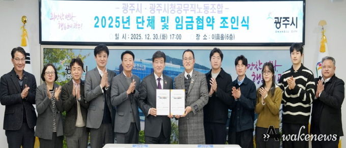 어웨이크뉴스 오경하 기자 | 광주시는 지난 30일 시청 이음홀에서 광주시청 공무직노동조합과 2025년도 단체 및 임금협약을 체결했다.