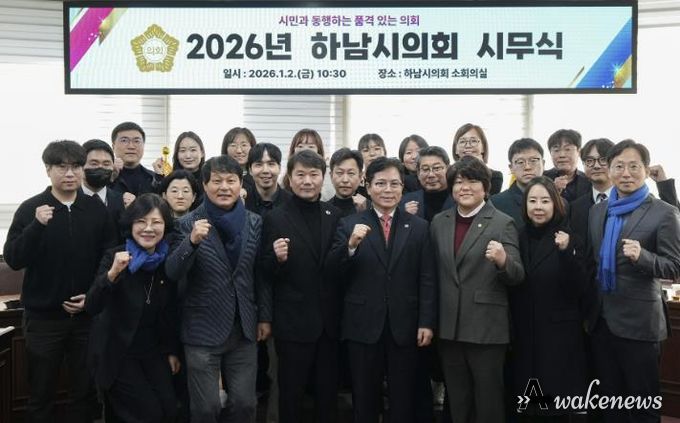 어웨이크뉴스 오경하 기자 | 하남시의회는 2026년 병오년(丙午年)을 맞아 2일 오전 현충탑 신년 참배에 이어 시무식을 열고 새해 의정 비전 실천 의지를 다졌다.