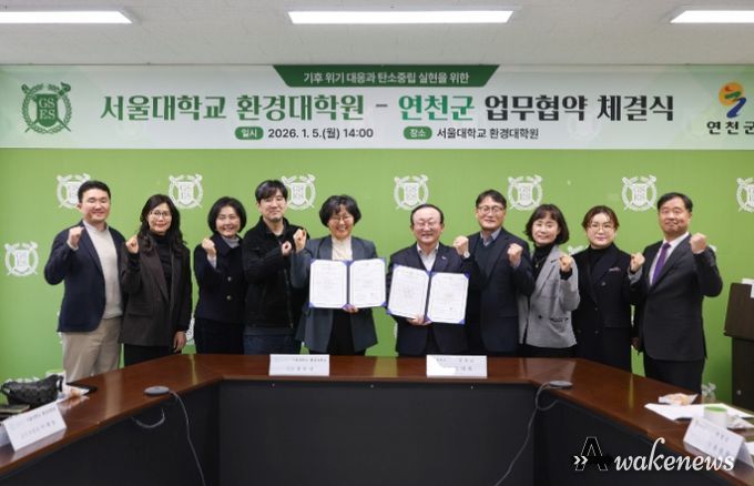 어웨이크뉴스 오경하 기자 | 연천군은 지난 5일 기후위기 대응과 탄소중립 실현을 위한 협력 강화를 목적으로 서울대학교 환경대학원과 업무협약을 체결했다고 밝혔다.