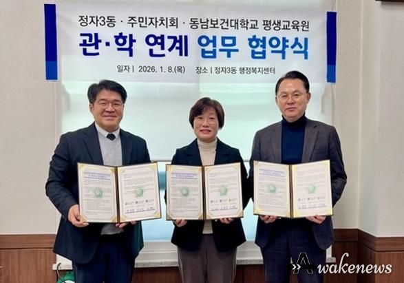 어웨이크뉴스 오경하 기자 | 수원시 장안구 정자3동 행정복지센터와 주민자치회는 지역 내 협력 기반을 구축해 주민 맞춤형 프로그램을 확대하고자 지난 8일 동남보건대학교 평생교육원과 업무협약을 체결했다.
