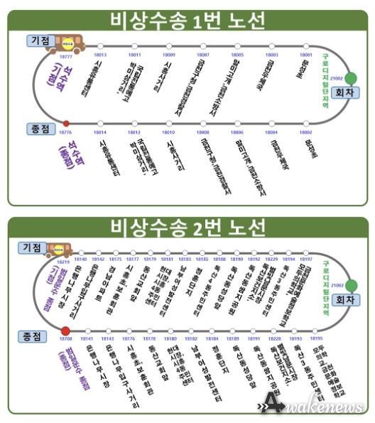 구는 2개 권역에 총 11대의 임시 무료셔틀버스를 투입한다. 오전 5시부터 밤 10시까지 오전과 오후 10~20분 배차간격으로 운행한다.