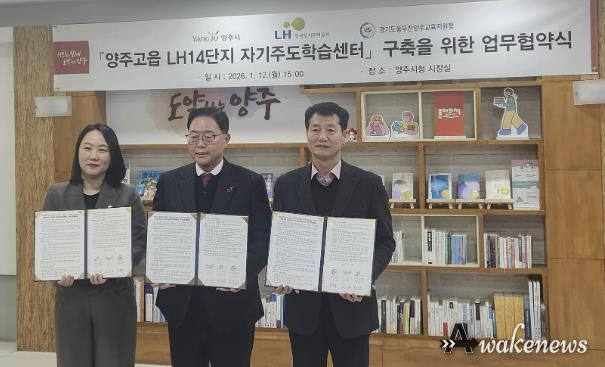 어웨이크뉴스 오경하 기자 | 동두천양주교육지원청은 1월 12일 양주시, 한국토지주택공사 경기북부지역본부와 함께 ‘양주고읍 LH14단지 자기주도학습센터 구축’을 위한 3자 간 업무협약(MOU)을 체결했다.