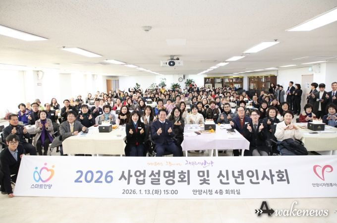 어웨이크뉴스 오경하 기자 | 안양시자원봉사센터(이사장 최대호)는 지난 13일 오후 3시, 안양시청 4층 회의실에서 ‘2026 사업설명회 및 신년인사회’를 개최하고, 새해 자원봉사 정책과 협력 방향을 공유하는 뜻깊은 시간을 가졌다고 14일 밝혔다.