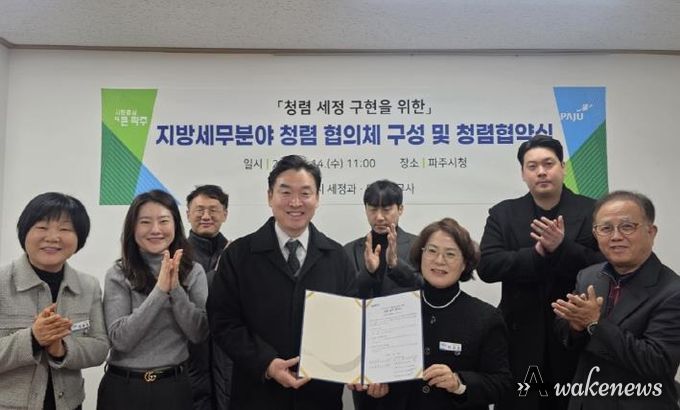 어웨이크뉴스 오경하 기자 | 파주시는 지난 14일 파주지역세무사회(마을세무사)와 함께 청렴 문화의 정착과 확산을 위한 민관 청렴협의체를 구성하고, 청렴 실천을 위한 협약을 체결했다고 밝혔다.