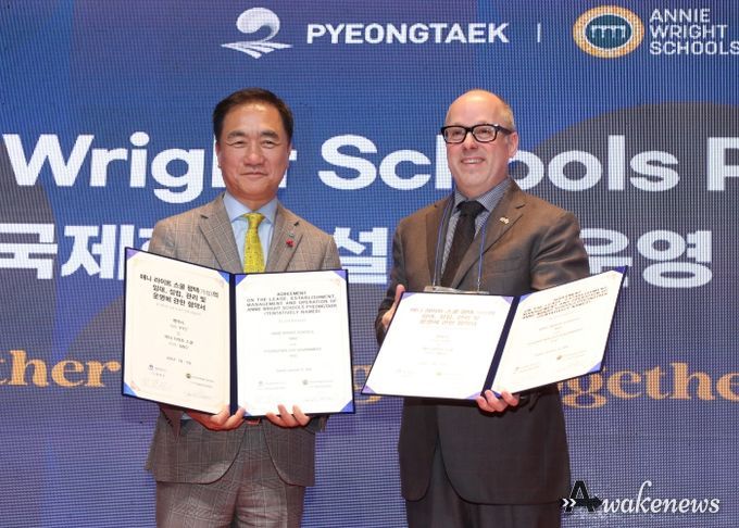 어웨이크뉴스 오경하 기자 | 평택시는 15일 평택아트센터에서 미국 워싱턴주 타코마 소재 사립학교 애니 라이트 스쿨(Annie Wright Schools)과 국제학교 설립·운영을 위한 협약(MOA·당사자 간 권리와 의무를 정한 계약)을 체결하고 협약식을 개최했다. 이날 행사에는 정장선 평택시장과 데이비드 오버튼 애니 라이트 스쿨 이사장 및 제이크 과드놀라 총교장을 비롯해 국회의원, 시·도의원, 유관기관장, 주한미군, 삼성 관계자, 외국인투자기업 관계자, 지역 주민 등 약 200명이 참석했다.