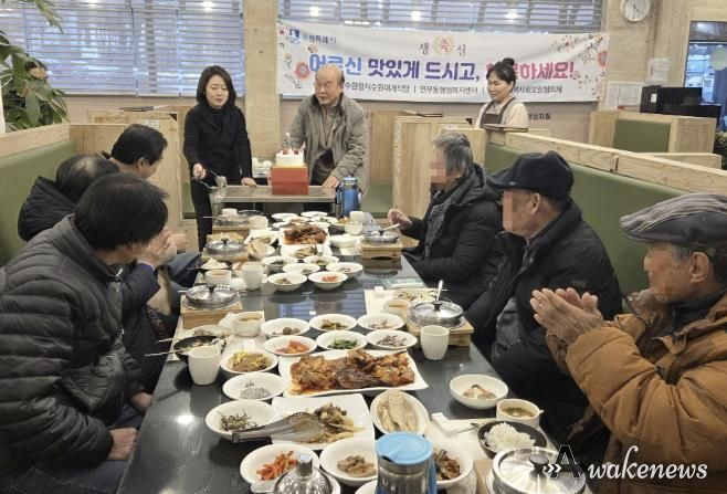 어웨이크뉴스 오경하 기자 | 수원시 장안구 연무동은 지난 15일 이교수한정식과 생신을 맞은 저소득 어르신들에게 따뜻한 한 끼를 대접하고 축하의 마음을 전하는 나눔 활동을 진행했다.