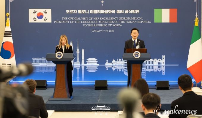 어웨이크뉴스 오경하 기자 | 이재명 대통령은 19일 조르자 멜로니 이탈리아 총리와의 정상회담 뒤 "저와 멜로니 총리는 전략적 동반자 명칭에 부합하는 미래지향적 수준으로 양국 관계를 더욱 발전시켜 나가기로 합의했다"고 밝혔다.