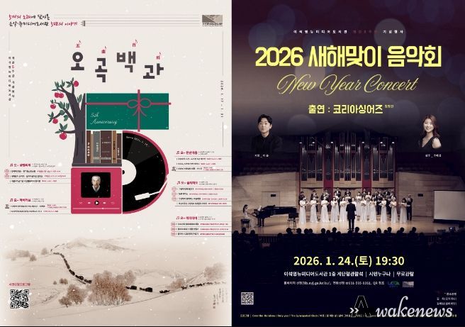 대표 프로그램으로는 오는 24일 오후 7시 30분, 도서관 1층 계단형 관람석에서 열리는 ‘2026 새해맞이 음악회’가 있다. 음악회에는 코리아싱어즈 합창단, 오카리나 연주자 김욱, 클라리네티스트 김예원 등이 출연해 새해의 희망을 전하는 공연을 선보인다.