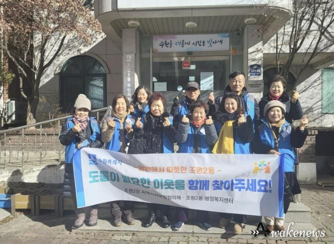 어웨이크뉴스 오경하 기자 | 수원시 장안구 조원2동 지역사회보장협의체가 지난 27일, 복지사각지대를 발굴하고 이웃에게 다양한 복지서비스를 알리기 위한 캠페인을 실시했다.