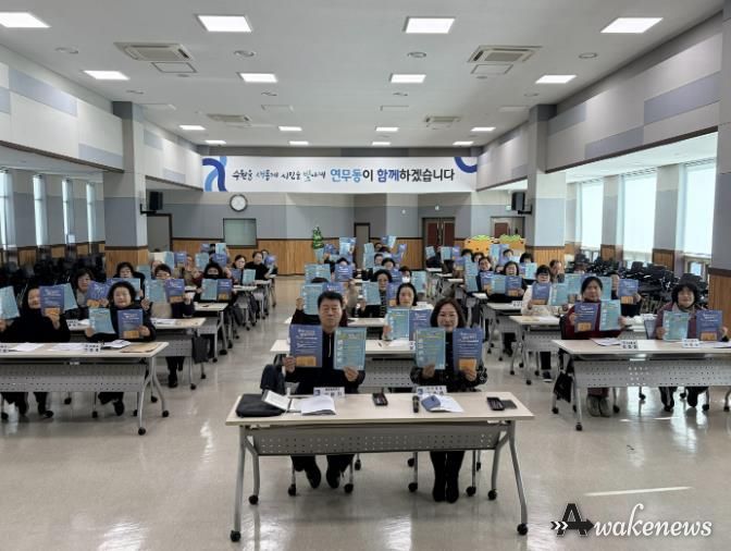 어웨이크뉴스 오경하 기자 | 수원시 장안구 연무동은 지난 27일 통장협의회 회의를 개최하고 ‘수원 새빛 생활비 패키지’와 ‘시민의 민원함’ 홍보 및 안내 방안을 논의했다.