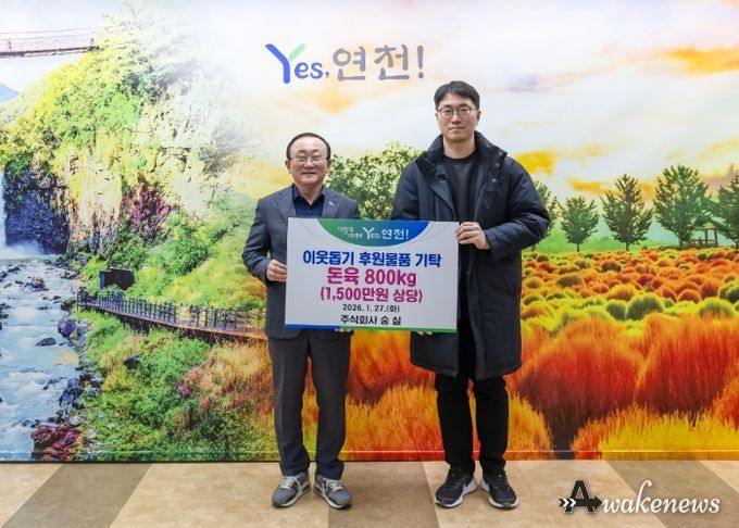 어웨이크뉴스 오경하 기자 | 주식회사 숭실은 지난 27일 연천군청을 방문해 지역 내 어려운 이웃을 돕기 위해 돈육 800kg(1,500만원 상당)을 후원물품으로 기탁했다.