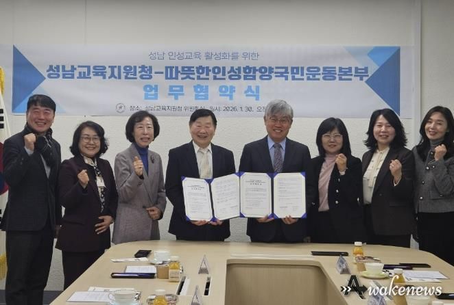 어웨이크뉴스 오경하 기자 | 성남교육지원청은 따뜻한인성함양국민운동본부와 1월 30일, 지역 연계 인성교육 지원 체제 구축으로 학교 현장의 인성교육 강화를 위한 업무협약(MOU)를 체결했다.