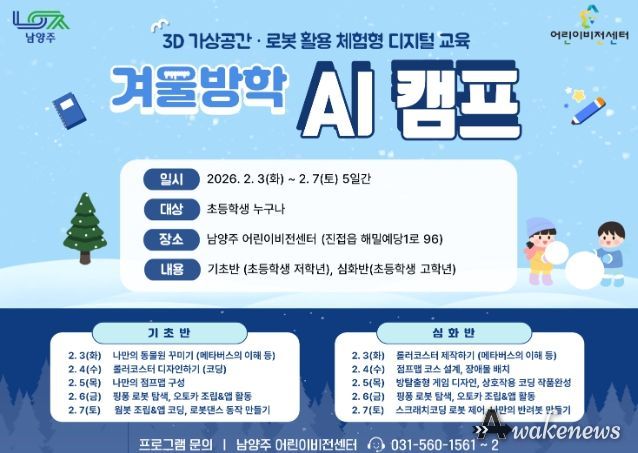어웨이크뉴스 오경하 기자 | 남양주시는 겨울방학을 맞아 이달 3일부터 7일까지 남양주시 어린이비전센터에서 초등학생을 대상으로 ‘AI 캠프’를 운영한다고 밝혔다.