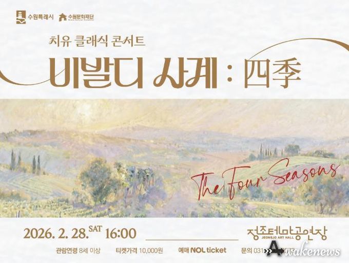 수원문화재단은 오는 28일 토요일 오후 4시 정조테마공연장에서 ‘치유 클래식 콘서트 '비발디 사계: 四季'’를 개최한다.