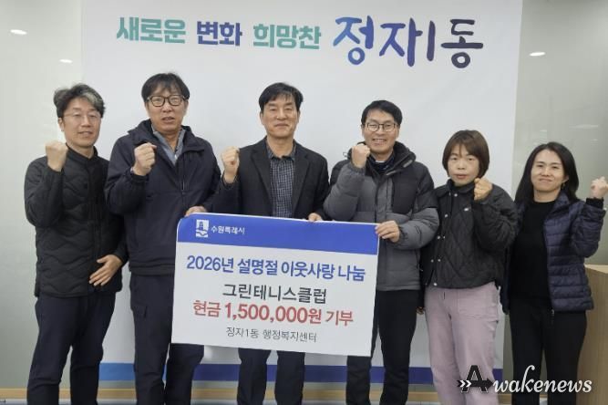 어웨이크뉴스 오경하 기자 | 수원시 장안구 정자1동은 지난 3일, 그린테니스클럽이 설 명절을 맞아 관내 취약계층을 돕기 위한 기부금 150만원을 전달했다고 밝혔다.