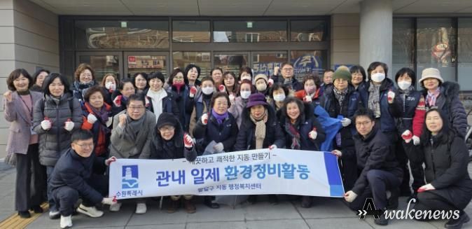 어웨이크뉴스 오경하 기자 | 수원시 팔달구 지동에서는 지난 3일, 다가오는 설 명절을 맞이해 통장협의회 30여 명과 동 직원들이 참여하여 설맞이 일제 대청소를 실시했다.