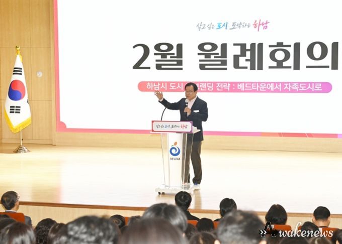 어웨이크뉴스 오경하 기자 | 하남시는 4일 별관 대강당에서 올해 첫 월례회의를 개최하고, 캠프콜번 개발 본격화 등 시정 주요 성과를 공유하며 ‘글로벌 경제 중심 도시 하남’을 향한 비전을 제시했다.