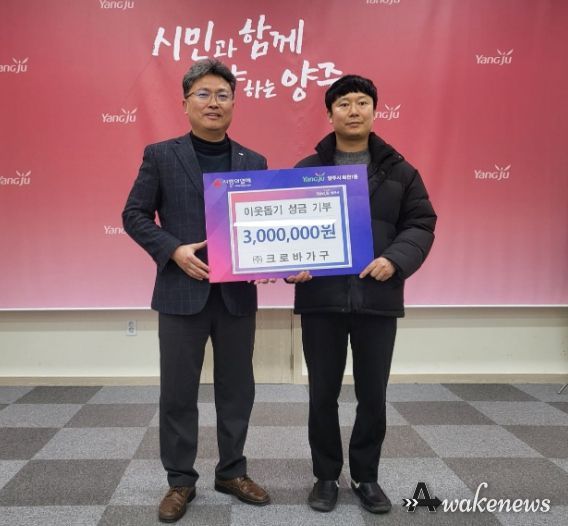 어웨이크뉴스 오경하 기자 | (주)크로바가구는 지난 3일 겨울철을 맞아 지역 내 취약계층과 소외된 이웃을 돕기 위해 성금 300만 원을 회천1동 행정복지센터에 전달했다.